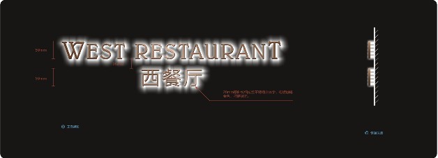 酒店招牌字設計,西餐招牌字制作模板的正面視圖!